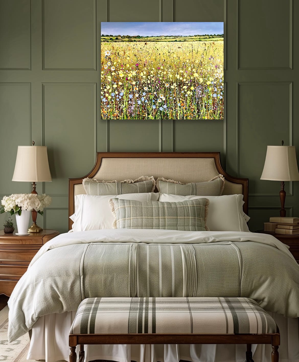 Perfect for collectors who value refined contemporary landscapes, “Autumn Meadow” conveys the warmth of autumn light, the poetry of wildflowers and the enduring charm of the British countryside. A celebration of seasonal change, capturing both vibrancy and calm in equal measure.