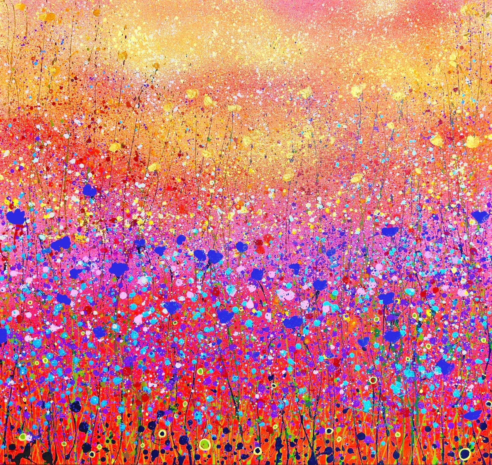 Blue Poppy Sunset giclée print is a limited edition fine art print taken from my original painting, filled with vibrant blue poppies, glowing sunset colour and a radiant sky.