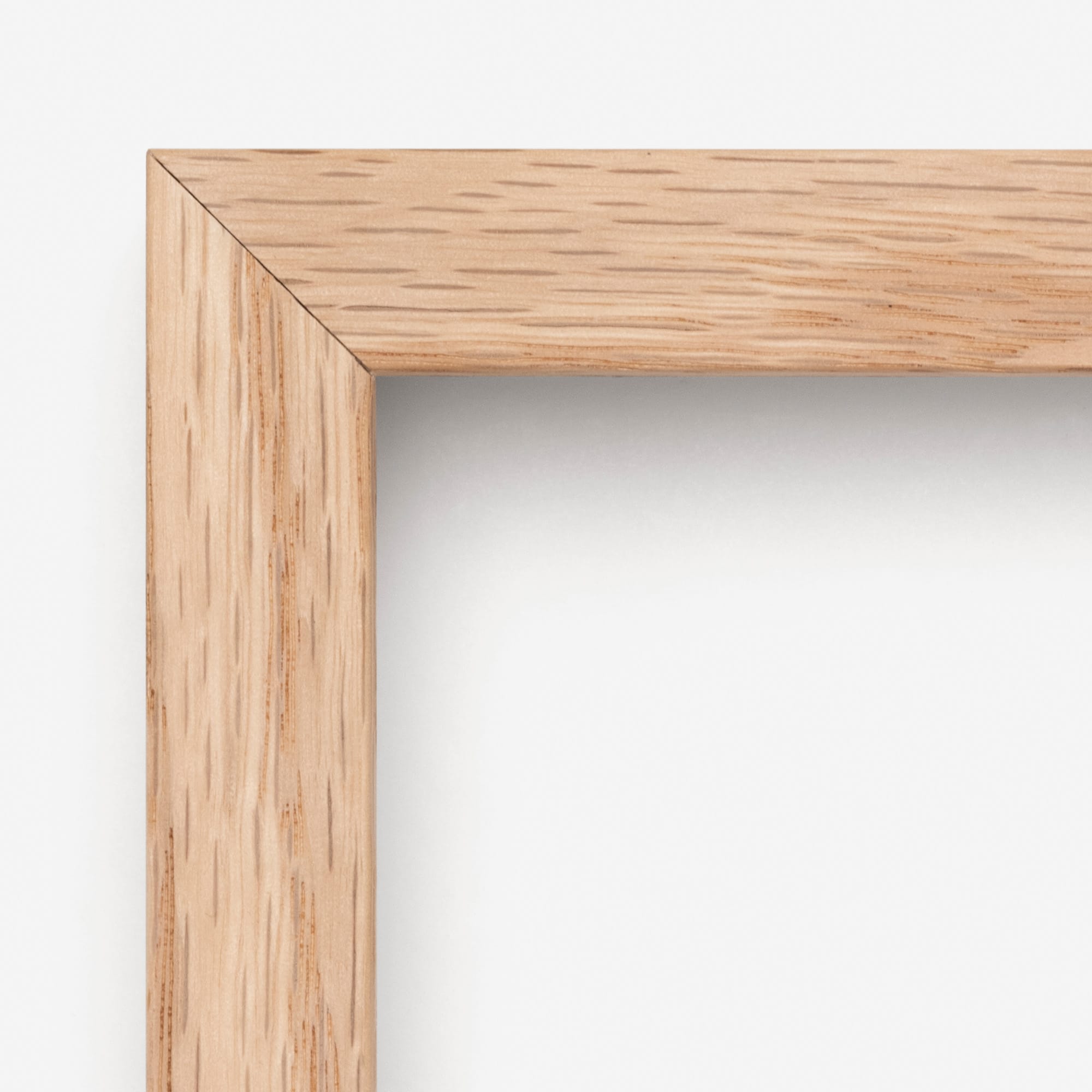 Framed pieces are presented in solid FSC-certified wooden frames, available in natural oak or white. Prints are set within a white window mount, allowing the artwork to sit slightly away from the glazing for a refined, balanced presentation.